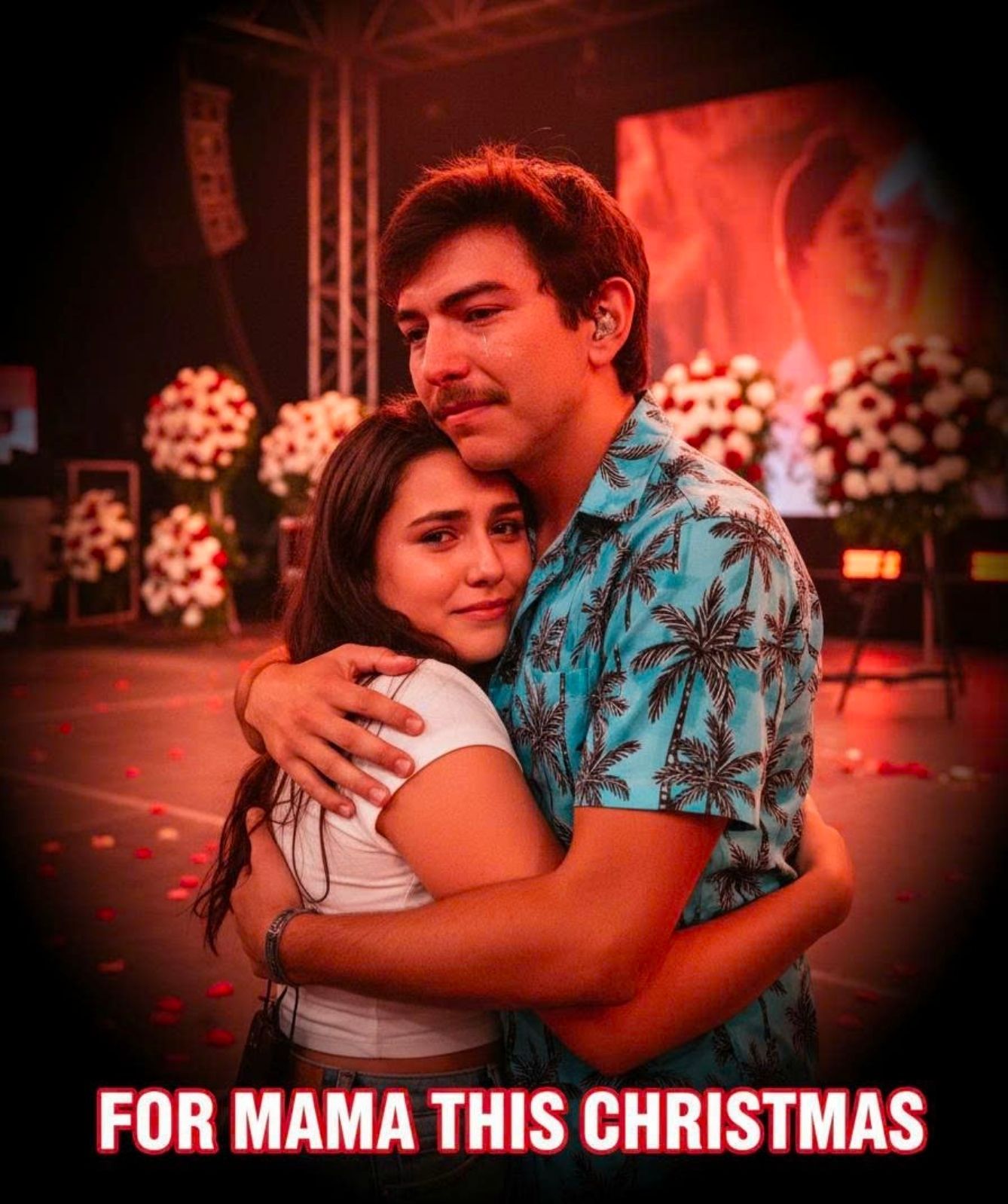 The stage lights softened without anyone noticing. The Christmas décor, the orchestra, the spectacle — all of it faded into the background. What remained was two children honoring the woman who raised them, doing the only thing that felt right: singing.