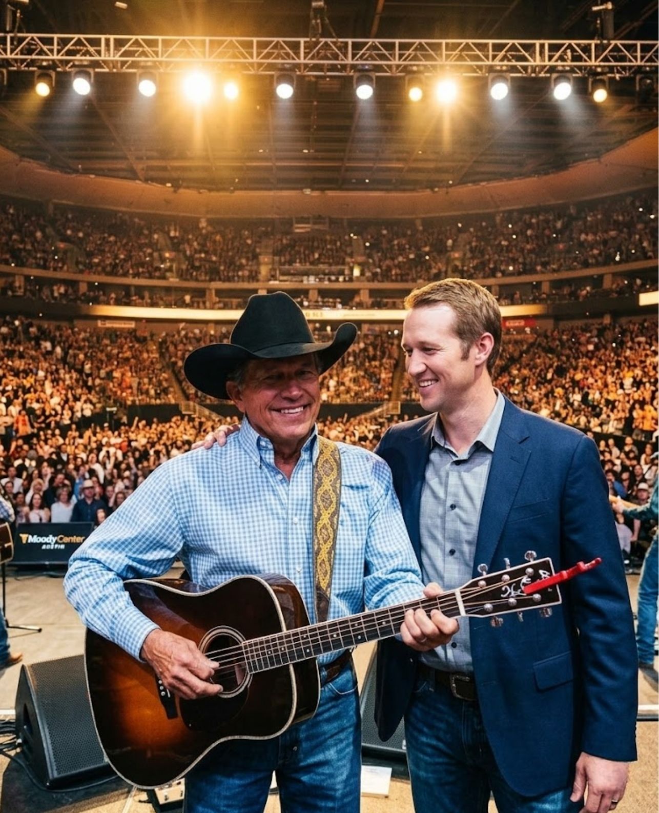 George paused, looked toward the side of the stage, and with a warm smile welcomed his son, George Strait Jr. (Bubba), known affectionately to fans as Bubba.