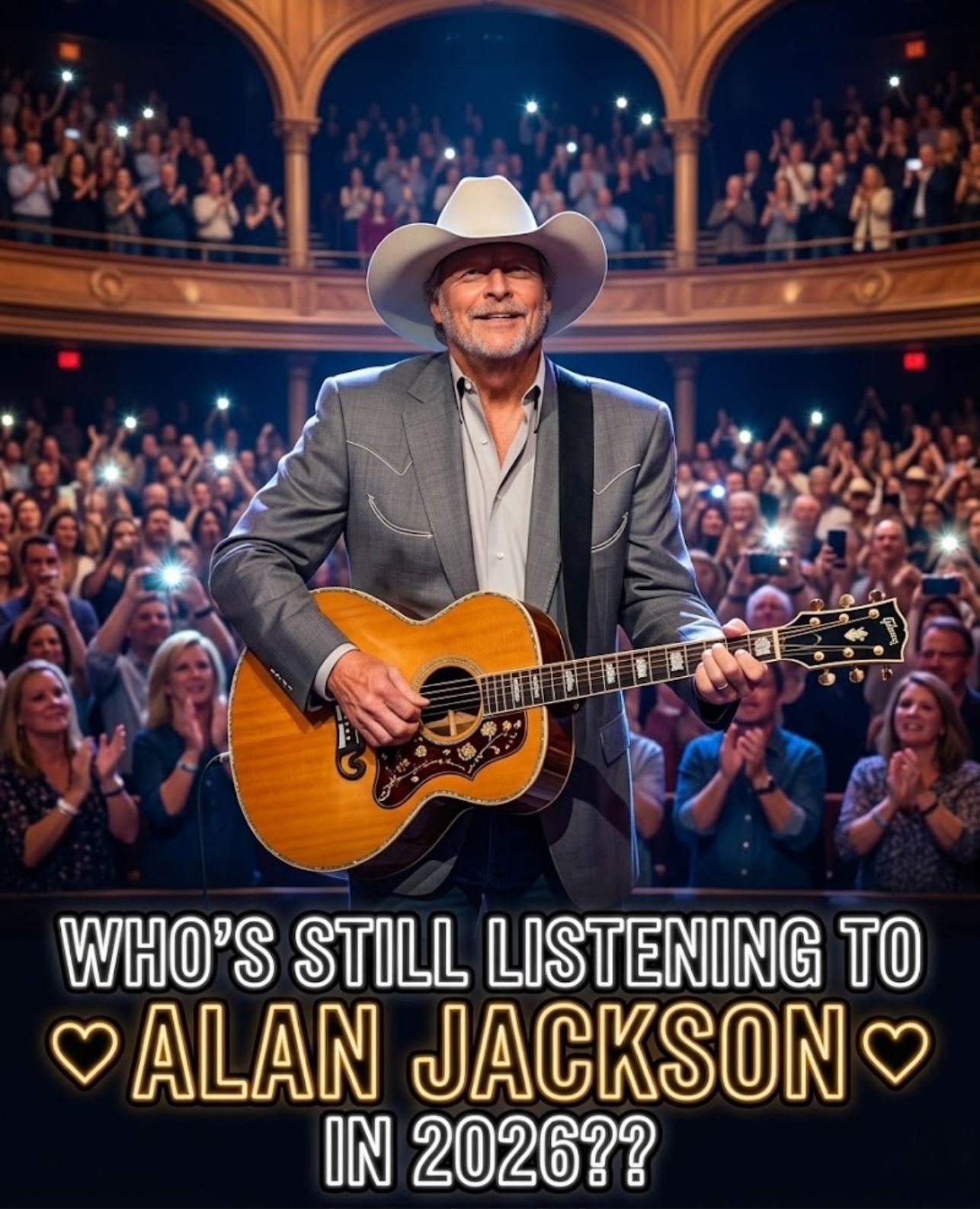 The same voice that once carried people through first love, family milestones, heartbreak, and long midnight drives down country roads was there again, warm and familiar, reaching into the deepest places of the heart. Some artists entertain an audience, but Alan Jackson has always been much more than that. His songs became part of people’s lives.